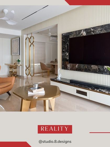- Living Room: Feature walls with marble cladding or stone veneer, PVD gold stainless steel partitions, and intricate false ceilings.