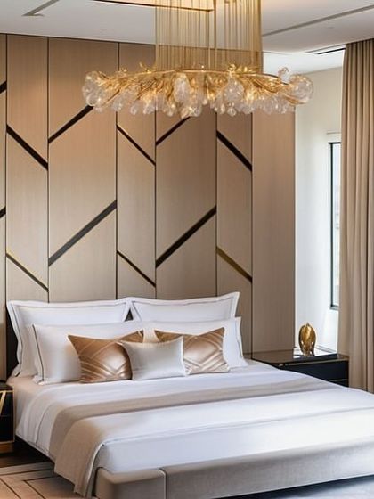 - Master Suite: Upholstered headboards (tufted velvet/fabric), fluted veneer wall paneling, and walk-in wardrobe concepts.