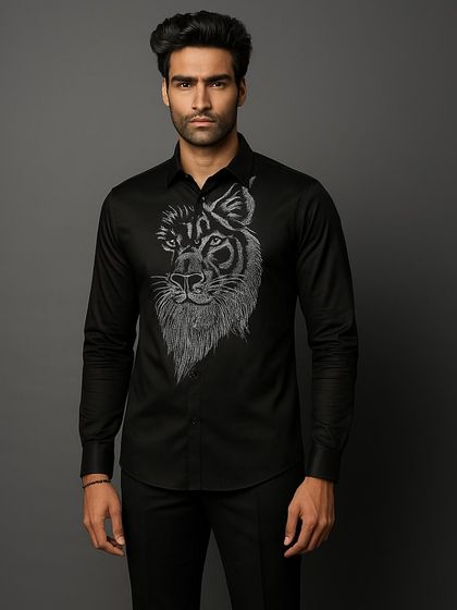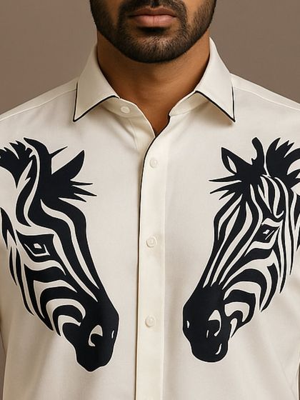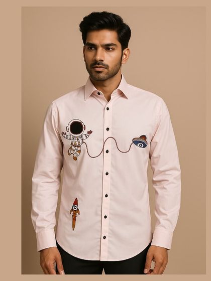 Hand embroidery is my jam. It’s not just about pretty stitching, bhai, it’s proper kaam (work) - every thread tells a story. You’ll find everything from abstract faces and wild lion motifs to quirky cyclists and astronauts. Even subtle floral line art and crests, all done by hand, make sure your shirt actually says something.