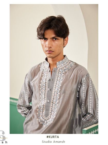 Our kurtas are designed to be the centerpiece of your wardrobe. We use premium fabrics like Chanderi silk and fine cottons, and adorn them with our signature hand-embroidery, from dense crewelwork to delicate Resham threads. With modern asymmetric cuts and classic silhouettes, these kurtas are versatile enough for any festive get-together or celebration.