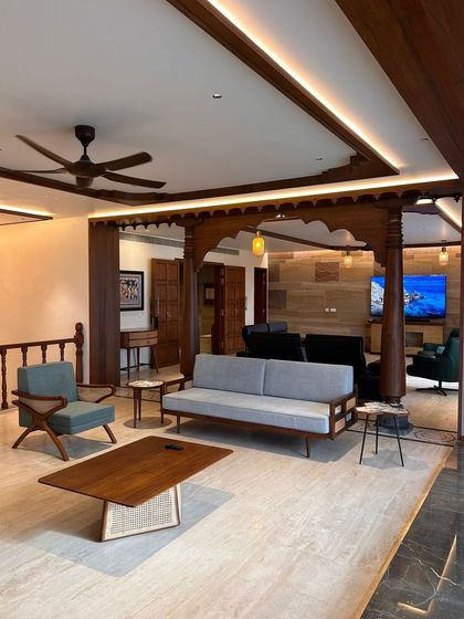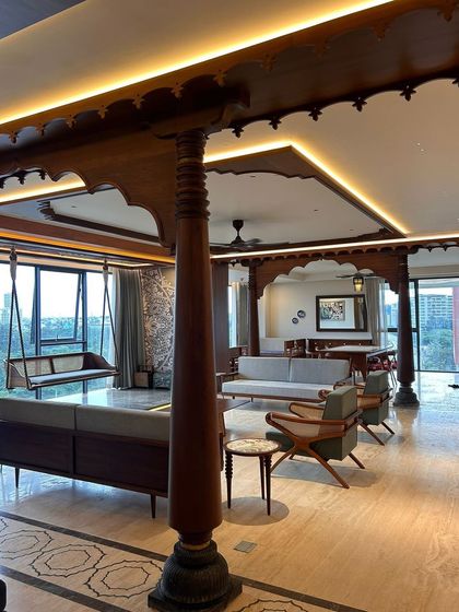 We use honest materials: wood, Kota stone, marble, exposed brick. Texture matters to us, so you’ll spot natural plaster or fluted panels for depth. Our custom furniture solutions mix sleek, modern pieces with traditional Indian touches - carved pillars and oonjals (swings) show up often. We put effort into lighting too, from cove lighting to moody pendants.