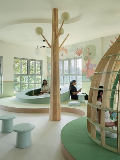 For Sri Kumaran School, I gave each kindergarten level its own world - desert, forest, aqua. It’s not just cute; it helps kids feel like they belong. I also designed big libraries, a proper auditorium, and activity rooms for everything from math to music. The corridors? Full of wall puzzles and murals. Even the cafeteria has stories about food and health.
