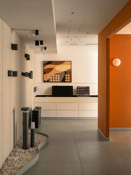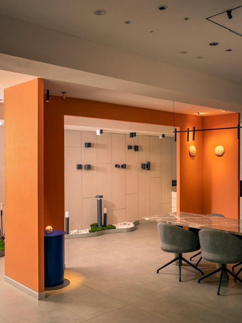 For this second showroom for Prism Lights, the focus was a clean, functional atelier for architectural lighting. We used an uncluttered layout with a neutral palette and bold, strategic pops of color to ensure the technical and aesthetic qualities of the lights were the main attraction.