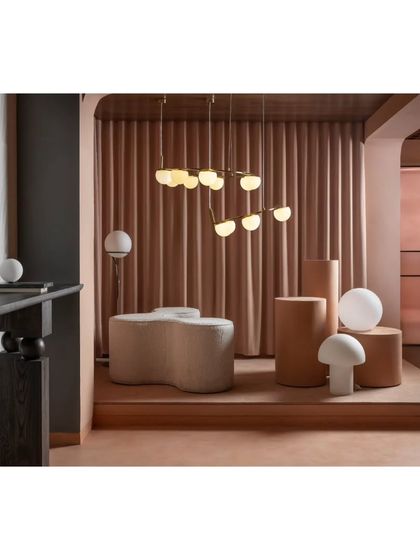 This project for Prism Lights was about creating a restorative and sensory experience. We used a monochromatic peach palette, soft curves, and layers of texture to build a world that engulfs your senses, allowing the decorative lighting to become part of an artistic landscape.