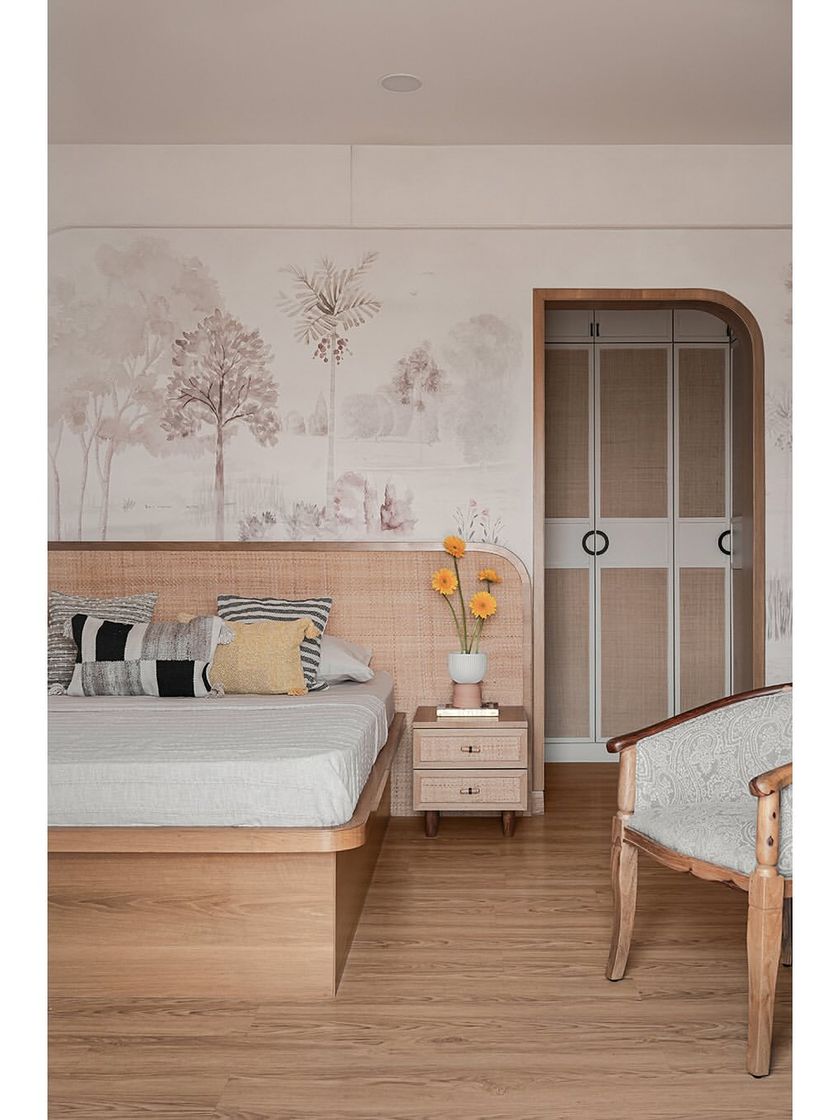 I believe a bedroom should be a personal sanctuary. I use calming color palettes, from earthy neutrals to soft pastels, and focus on natural textures like cane, wood, and linen to create restful spaces that feel like a warm embrace at the end of the day.