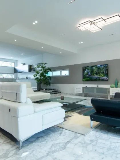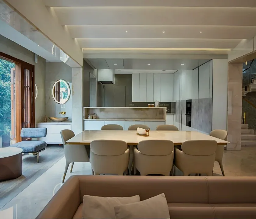 I specialize in designing open-plan living and dining areas that feel airy, connected, and full of natural light. These spaces are defined by clean lines, neutral color palettes with bold accents, and a seamless flow between different functional zones like lounging, dining, and cooking.