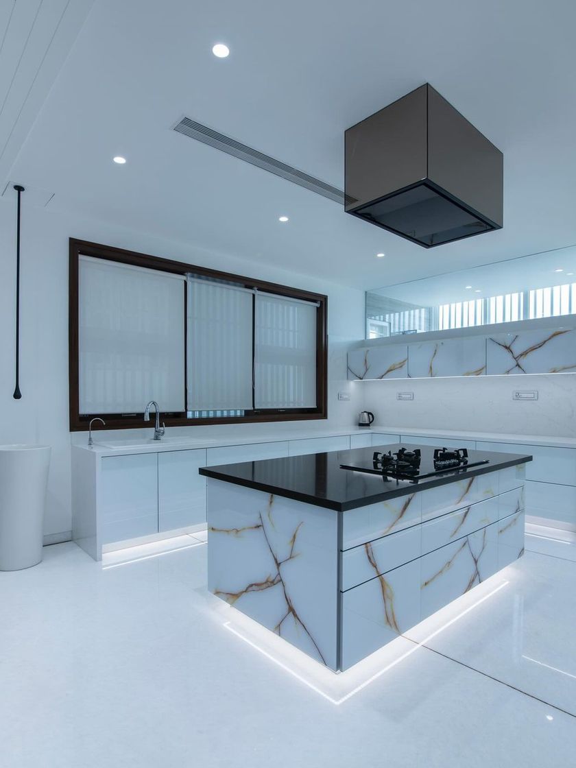 The kitchen is the heart of the home, and I design them to be both beautiful and highly functional. My designs feature modern aesthetics, from handleless cabinets and integrated appliances to striking island centerpieces, using materials like marble, glass, and high-gloss laminates.