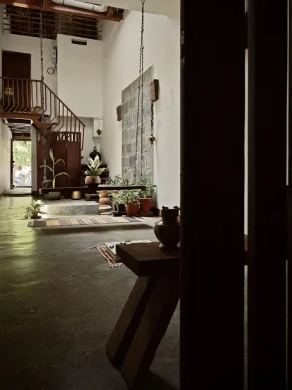 I have a special passion for restoring ancestral homes, where I blend tradition with modernity. My approach honors the building's history and cultural context, using vernacular materials and techniques while updating the space for contemporary living, as seen in this 200-year-old Mattur residence.