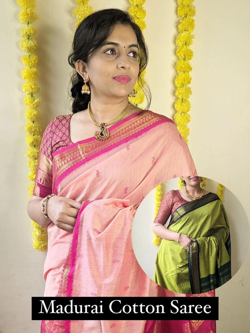 Dive into the rich heritage of Karnataka and Tamil Nadu with our Ilkal and Madurai cotton sarees. Known for their distinctive borders, traditional motifs, and unique weaving techniques, these sarees are perfect for festivals and family gatherings. Each piece tells a story of generations of craftsmanship.