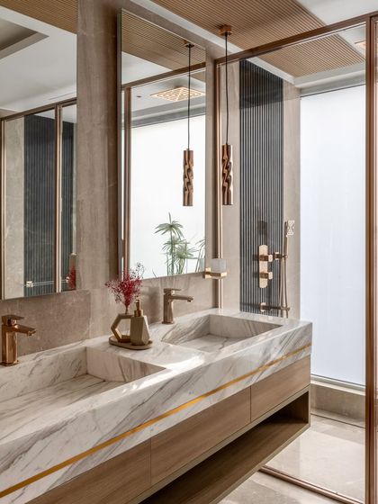 We transform bathrooms into private, spa-like sanctuaries using premium materials like marble and onyx. Our designs focus on luxurious finishes, smart space utilization, and ambient lighting to create a truly rejuvenating experience.