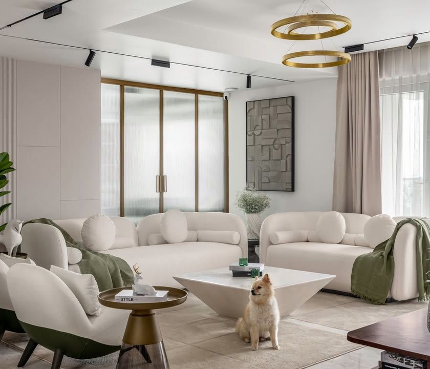 We design living rooms that are the centerpiece of the home, balancing architectural statements with comfortable, everyday luxury. Our focus is on creating open, airy environments using neutral palettes, rich textures, and curated pops of color, tailored for both relaxation and entertaining. We specialize in designing double-height spaces and integrating custom entertainment units.