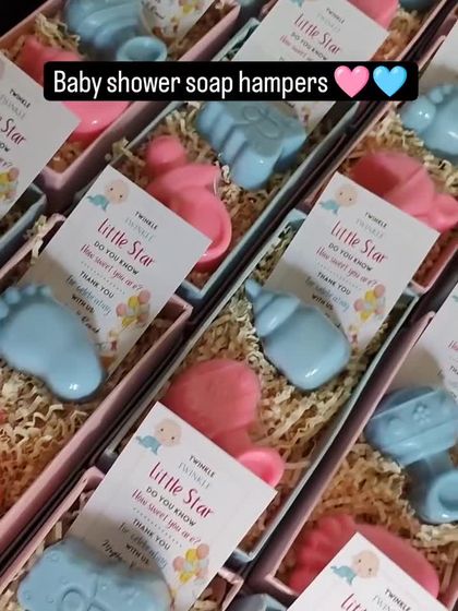 Celebrate the little one on the way with adorable, handcrafted return gifts. I offer everything from tiny footprint soaps and themed candles to fully customized hampers, with options to match your decor and budget. All my soaps are gentle, SLS and paraben free.
