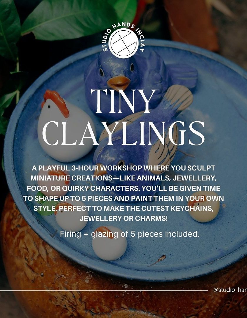 This playful 3-hour workshop is all about creating cute miniature art. You can make up to 5 tiny pieces, like animals, food, or quirky characters. I’ll guide you through sculpting and painting, and then I’ll fire and glaze them so you can take home your own keychains or keepsakes.