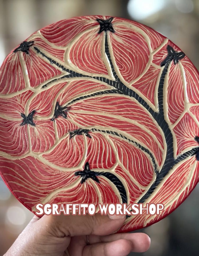 Sgraffito is a beautiful technique where you paint a piece with color and then carve your design into it. In this 3-hour workshop, I provide a raw clay plate and guide you through the process of painting and carving to create a one-of-a-kind decorative piece.