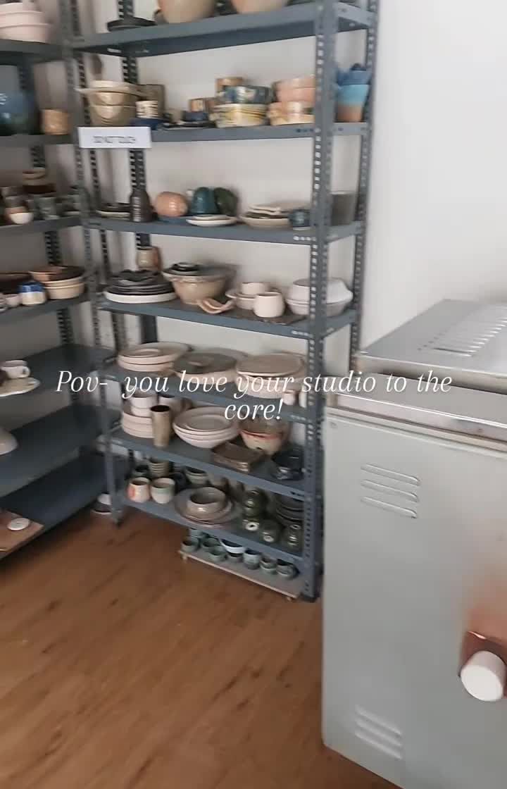 Welcome to my happy place! This is where the magic happens, from my trusty kiln that brings the pieces to life to the shelves filled with works-in-progress. It's more than a workspace; it's my sanctuary.