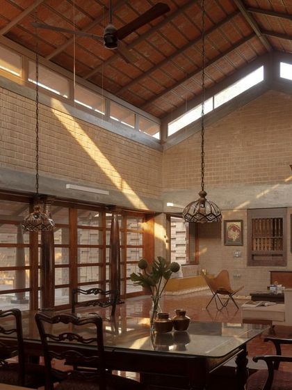 This project embodies our core philosophy of building with nature. We used earth from the site to create stabilized mud blocks, lime plaster for walls, and locally sourced Athangudi tiles, creating a home that breathes. The design focuses on natural light and ventilation, with double height spaces and restored wooden elements that honor traditional craftsmanship.