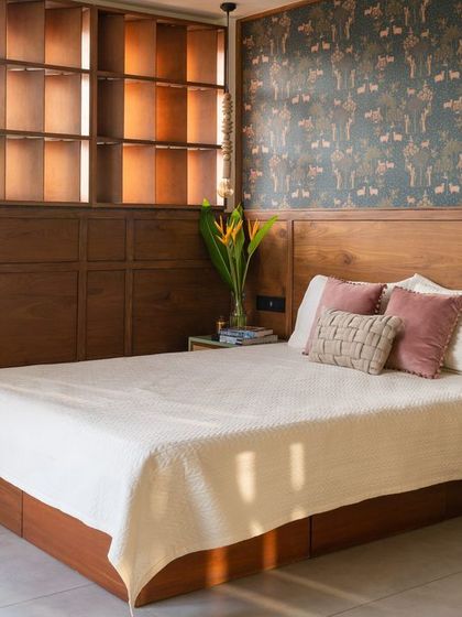Our interior design is about creating layered, personal, and luxurious spaces. We focus on clean lines, rich textures like travertine and wood, and custom details like cane weaves and floating screens. These homes showcase how we blend worldly extravagance with a warm, cozy vibe for a well-traveled family.
