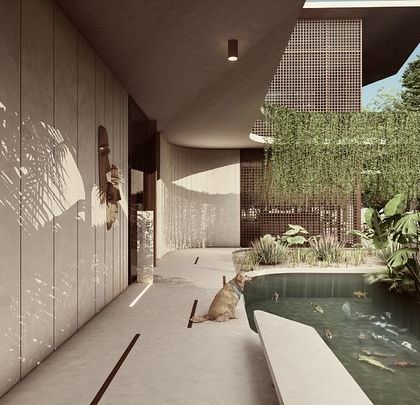 Tropical Modernism - Earthy materials, flowing spaces, courtyards, screens - all about that warm serenity and tropical modernism architecture.