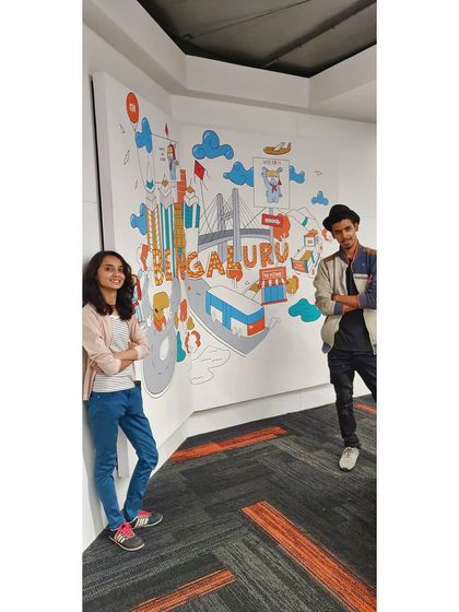 We’re Bhavishya and Balu, Studio B. Bangalore’s our base, but Mysore feels like home too. We started painting walls back in college, skipping classes for a wild Avengers mural gig. Heights freak one of us out, but we still climb up, shaky scaffolding and all. We’ve painted Dasara elephants, called out Bangalore’s pollution, and filled cafes with color. Progress over perfection, always. Every wall’s a new story, and we just love the ride.