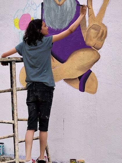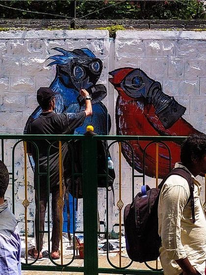 We’re Bhavishya and Balu, Studio B. Bangalore’s our base, but Mysore feels like home too. We started painting walls back in college, skipping classes for a wild Avengers mural gig. Heights freak one of us out, but we still climb up, shaky scaffolding and all. We’ve painted Dasara elephants, called out Bangalore’s pollution, and filled cafes with color. Progress over perfection, always. Every wall’s a new story, and we just love the ride.