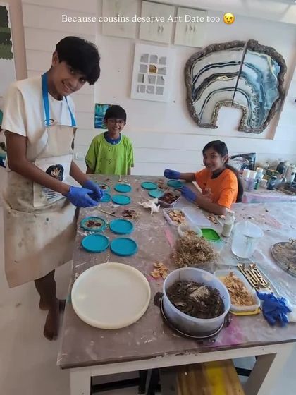 Discover your inner artist in a fun, supportive environment. I host workshops for all skill levels, perfect for individuals, couples, families, or friends. We cover everything from resin art and texture painting to making your own glowing moon lamps.