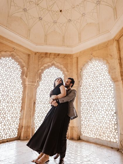 We specialize in creating regal love stories set against the majestic forts and palaces of Rajasthan. This collection showcases our expertise in using heritage architecture, from the vibrant corridors of Patrika Gate to the grand courtyards of Amer Fort, to frame your pre-wedding or engagement portraits with timeless elegance.