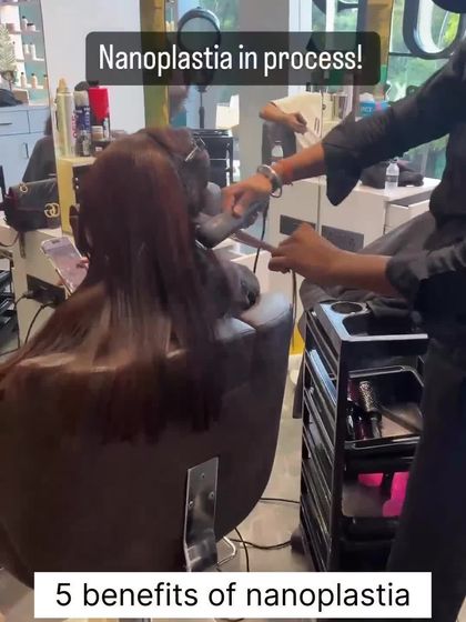 This is my most popular treatment for achieving that "glass hair" look. Nanoplastia is a chemical-free hair repair system that provides intense smoothing and up to 90% straightening, leaving your hair silky, frizz-free, and incredibly shiny, even if it's been damaged before.