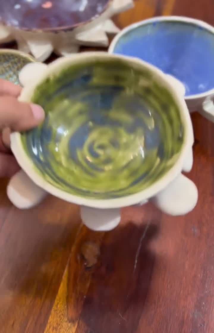 I love creating bowls that have a bit of attitude and architectural form. This collection features my signature spiky designs and three-legged tripod bowls, which elevate the simple bowl into a sculptural centerpiece. They are quirky, tactile, and perfect for everything from serving to display.