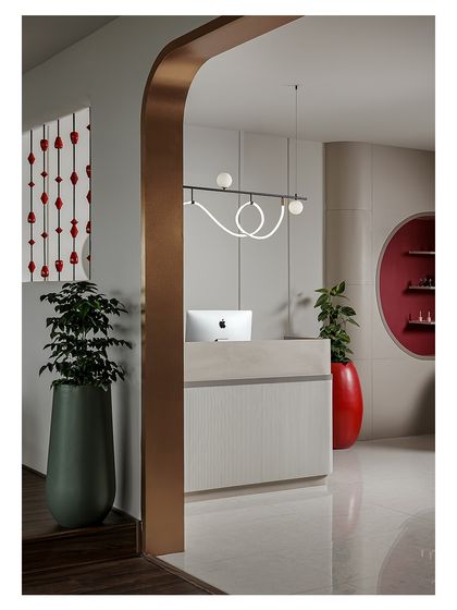 For this 1,500 sq ft unisex salon in North Bengaluru, I created a high-end retail experience that feels like a plush residence. The design melds soft minimalism with Art Deco principles, using a flowing layout, rich crimson accents, and custom details like arches and fluted glass to craft a space that is both functional and ceremonial.