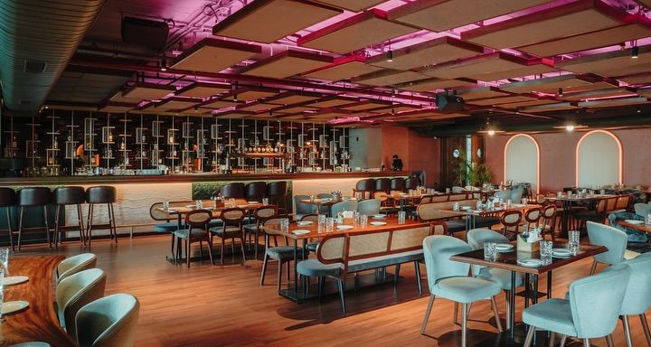 For this resto-bar in Hennur, I designed an artistic and immersive dining experience. The space blends contemporary elegance with raw, industrial charm, featuring a dramatic suspended bar, exposed brick walls, and rustic textures like cane and terrazzo to create a sophisticated yet inviting ambiance.