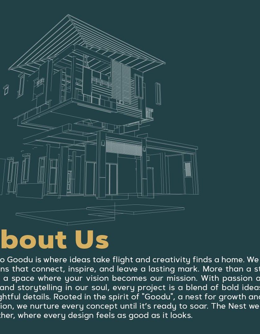 Goodu is more than a studio; it's a space where your vision becomes our mission. Rooted in the spirit of 'Goodu' (a nest), we are a collective of creators who nurture every concept with passion and precision. The nest we build together is a testament to our collaborative spirit.