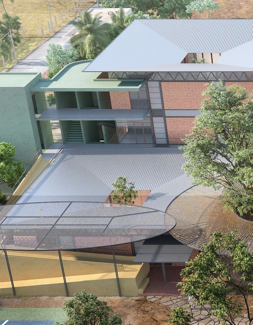 For large sites like schools or corporate campuses, we break down the scale by creating smaller, interconnected pods or clusters. This "small village" approach uses walkways, courtyards, and shared open areas to foster a sense of community and organic interaction, all while using honest materials like terracotta and brick.