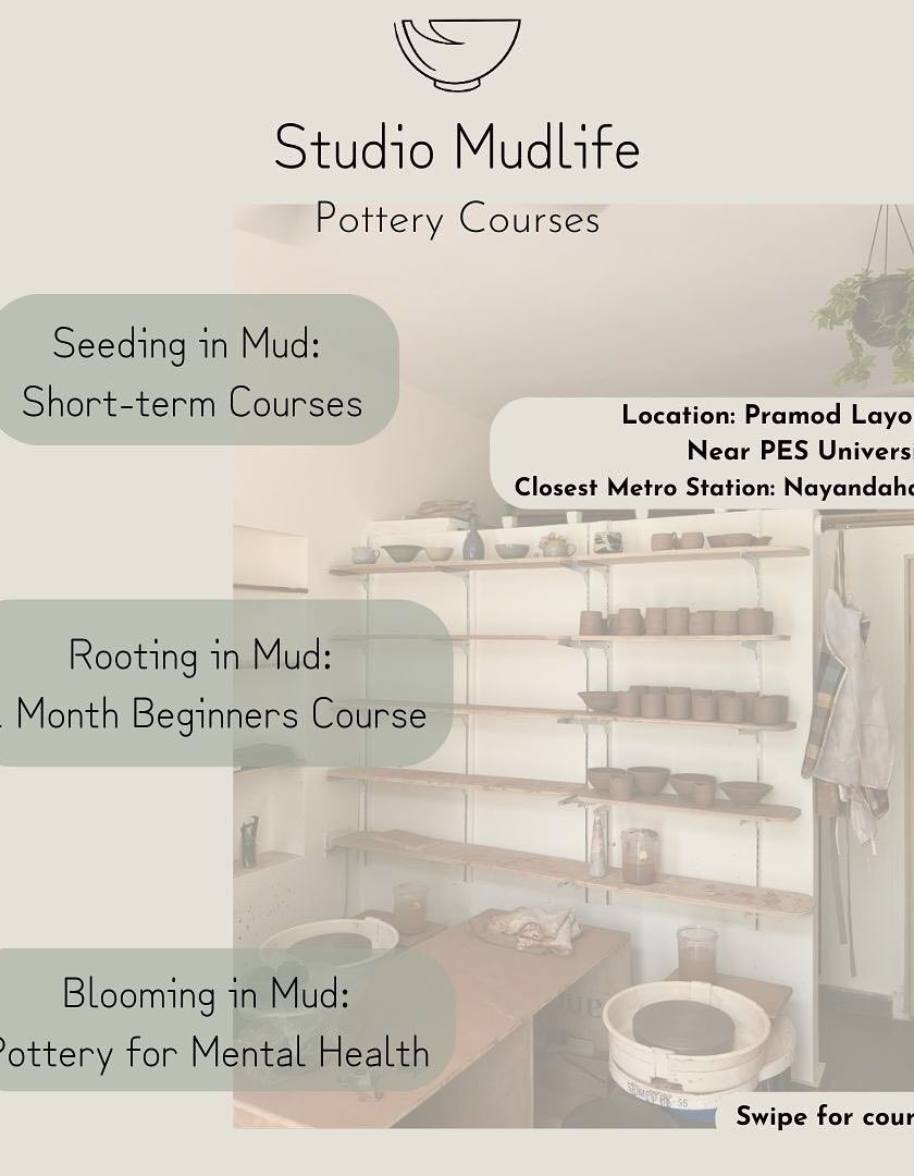 We're the two halves of Studio Mudlife. Mahanth is the technical potter, and Shreya is a trauma specialist who leads our art therapy sessions. We combined our passions to create a studio that is both a professional pottery space and a center for wellness.