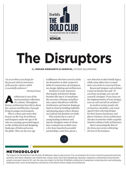 We are humbled and honored to have our work recognized by leading publications. Being featured in Forbes India's "30 Under 45 Top Designers and Architects" list is a testament to our team's hard work and our commitment to creating meaningful, story-driven spaces.