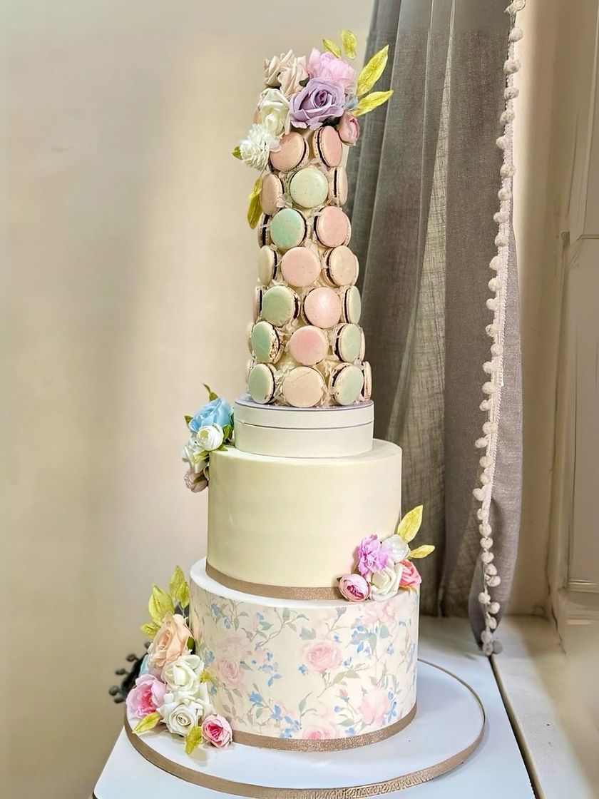 For moments that call for timeless elegance, I design multi-tiered cakes perfect for weddings, anniversaries, and grand celebrations. These creations feature delicate details like hand-piped florals and stunning macaron towers.