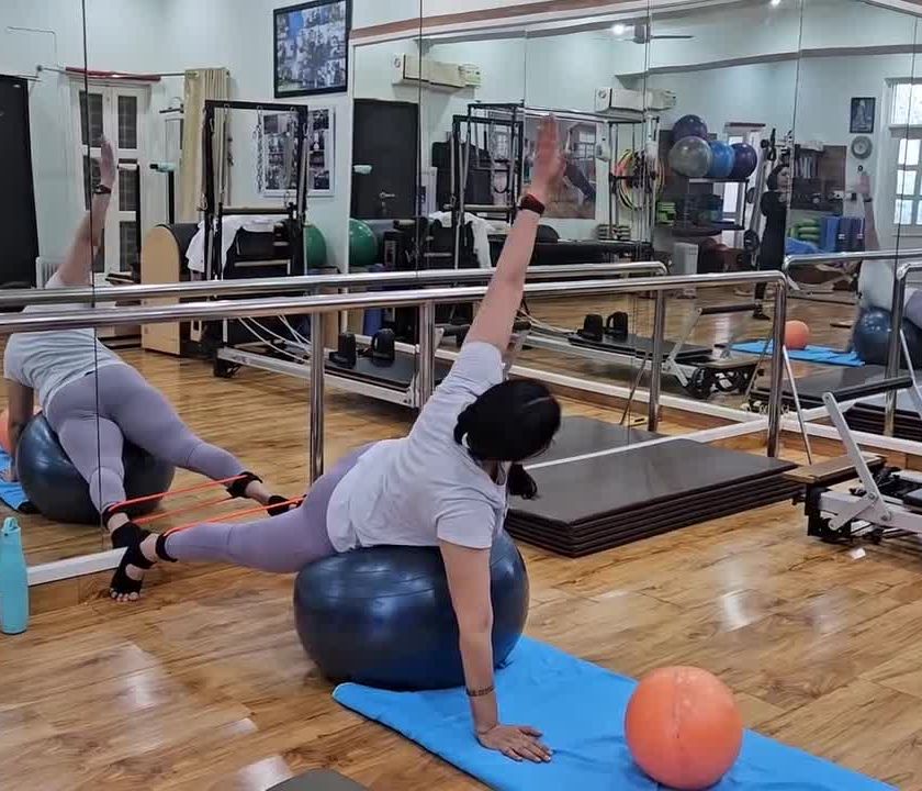 Pilates isn't just about the big machines. In our mat classes, we use our own body weight and a variety of props like stability balls, flex bands, and foam rollers to create fun, challenging, and effective workouts.