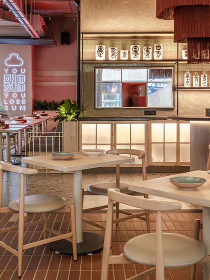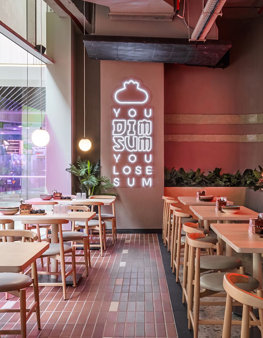 For this award winning Pan-Asian dim sum bar, we crafted a narrative around the brand's playful mascot and cinematic feel. The design layers bold neon, tactile materials like wood and brick, and custom patterned lighting to create a space that is theatrical, immersive, and full of personality.