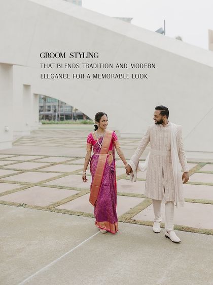 Brides, every event gets its own effortless look, from Mehendi to Reception. I keep trousseau planning smooth and every piece practical - glide, don’t waddle. Grooms, we go beyond basic - I’ll help you find a sherwani that makes you think, “Evvaḷavu azhagāna paiyan!” (what a handsome boy!).