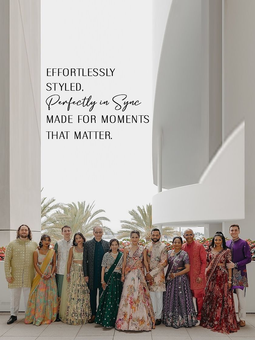 Whether it's a traditional Hindu ceremony or a classic church wedding, we honor the sanctity of the occasion with graceful and appropriate styling. We work with families to create looks that respect cultural traditions while incorporating personal style, focusing on heritage fabrics, timeless silhouettes, and a cohesive aesthetic.