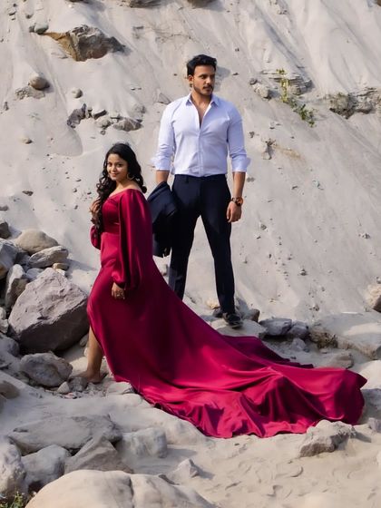I help couples tell their story through coordinated outfits for their pre-wedding shoots. We'll work together to create looks that match your personality and the concept of your shoot, from romantic gowns to casual chic ensembles.