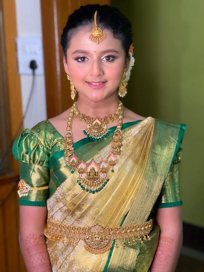 Bridal & Event Makeup - I do traditional South Indian bridal makeup for Muhurtham, Varpooja, Reception, plus Seemantham, engagements, housewarmings, and naming ceremonies.