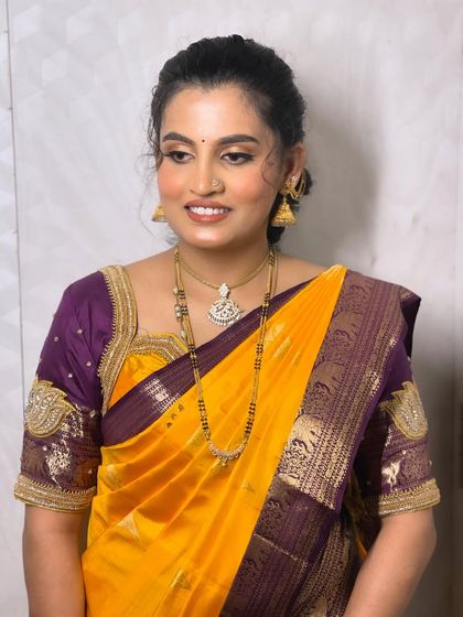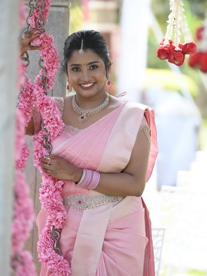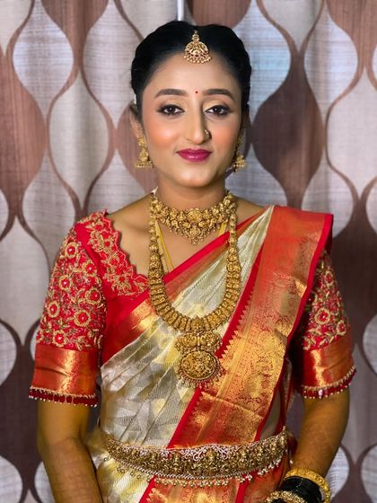 With over 10 years of experience, I create flawless, natural HD makeup looks for South Indian brides and special events. My passion is making you feel like the most gorgeous version of yourself for your Muhurtham, Seemantham, or reception.