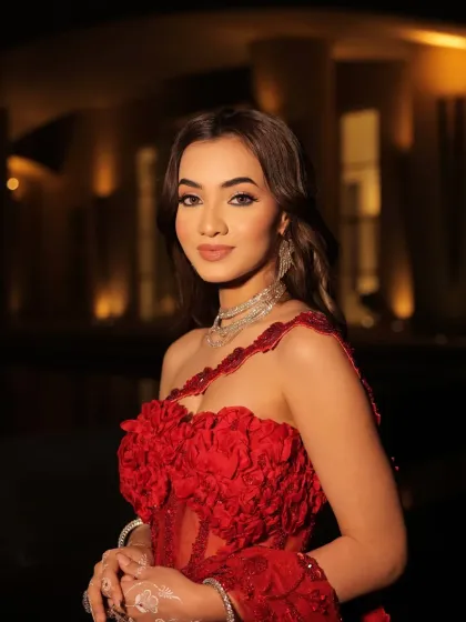 For your cocktail, sangeet, or reception, we can create a high-fashion, glamorous look that is sure to turn heads. I specialize in styling modern gowns, chic sarees, and fusion wear with sparkling diamond jewelry and bold makeup for an unforgettable evening.