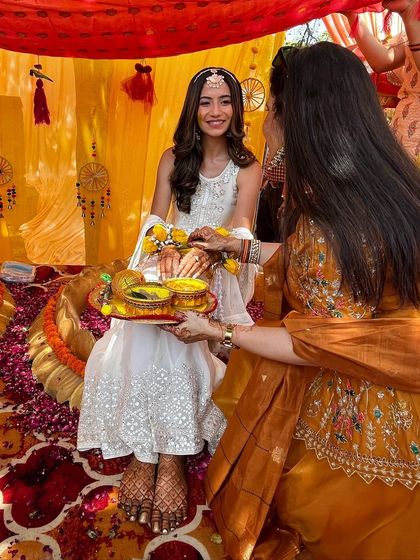 These pre-wedding ceremonies are filled with color, laughter, and tradition. I help you choose outfits that are bright, comfortable, and reflect the joyous spirit of the events. Whether it's a quirky printed co-ord set for Haldi, a traditional sharara for Mehendi, or coordinated floral outfits for the couple, we'll create looks that are both practical and picture-perfect.