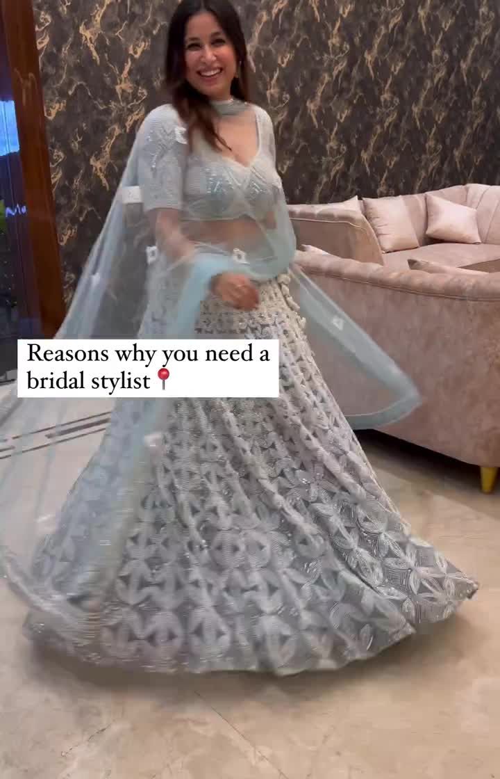 Your wedding day look is the most important one. I help you find or create the perfect lehenga or saree that reflects your personality, whether you dream of a traditional red zardozi lehenga, a modern pastel outfit, or a minimalist Anand Karaj look. I focus on the entire silhouette, from the outfit's embroidery to the final dupatta draping.