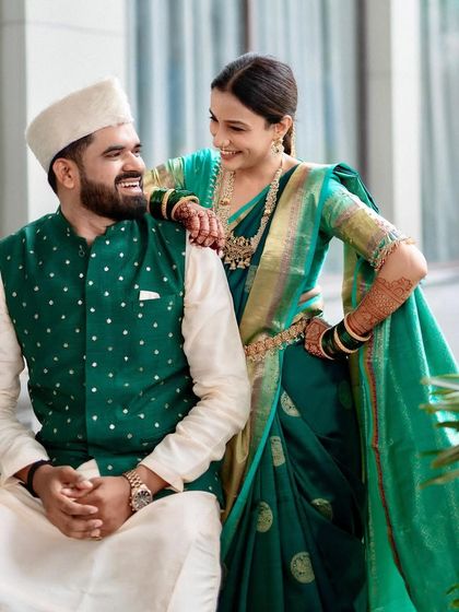 This is my specialty and absolute love. I help couples embrace the beauty of Maharashtrian traditions, from selecting the perfect Paithani saree and matching it with a custom pheta, to finding the right gold jewelry like a nath and kamarbandh. This section features real couples and campaign looks that celebrate this golden festival.