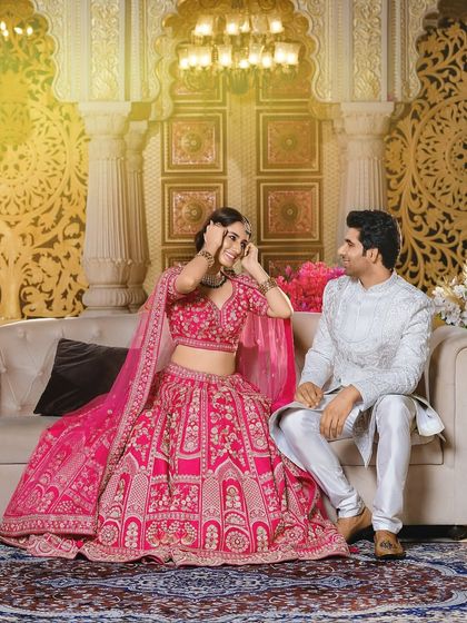 I help couples create a harmonious look that feels connected, not random. This involves coordinating colors, fabrics, and styles for events like receptions, engagements, or pre-wedding shoots, covering everything from elegant lehengas and sherwanis to chic sarees and suits.
