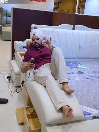 My beds are loaded - full body massager (even for your head), wireless charging, built-in locker, music system, and an attached dressing unit with extra storage. Some beds have sensor lights and my TV units can come with electric fireplaces - le dekh, aapko luxury ka feel mil jayega (seriously, you’ll feel the luxury).