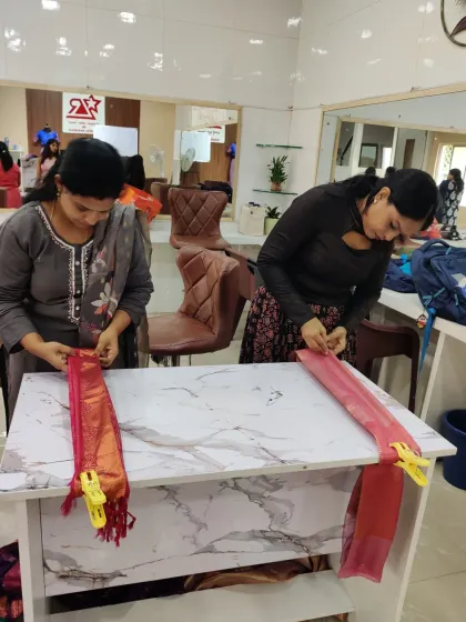 What You’ll Learn - Hands-on training: fluffy pleats saree draping, Madisar, box folding, ironing, picking inskirt, hanger folding, certificate, after-class support.