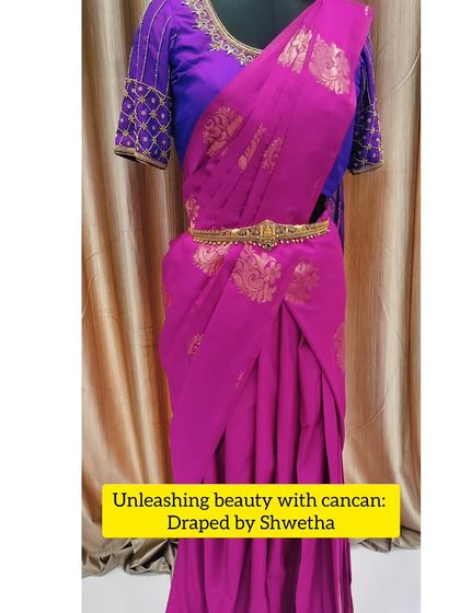 I can drape your saree in more than 12 different ways to match any occasion or mood. Whether you want a traditional Iyer Madisar style, a dramatic can-can drape for extra volume, or a modern mermaid look, I can create it for you.